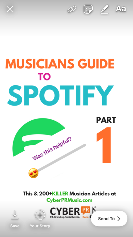 Instagram Stories is a feature that allows you to make short posts about your day that are only visible for 24 hours (just like Snapchat). With this, you can post many times a day without flooding your feed and potentially hurting your engagement. You can post simple photos of you going about your day, record short informal videos, GIFS, visualize highlights from your brand – your bio, your band members, articles that have been written about you, playlist adds, gigs coming up or guitar solos – anything that is relevant can be “grouped.” You can also use Boomerang to make looped posts.