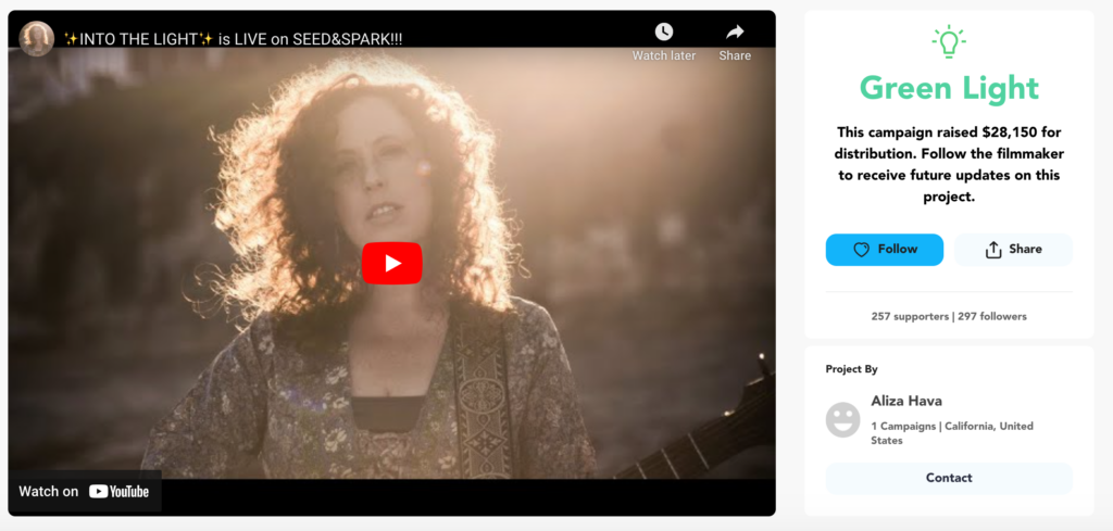 PROS: Seed&Spark has a high success rate due to its focus on community building and offers tools to help creators strategize their campaigns. It includes a “wishlist” feature, allowing musicians to request specific items or services instead of just monetary donations. Campaign backers gain a sense of direct impact by contributing toward tangible goals. Additionally, Seed&Spark offers educational resources to guide creators through successful crowdfunding.