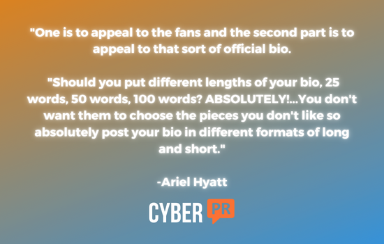 Your pitch doesn’t have to be lengthy, it just have to give current and future fans a hit on what is your sound or what will they get. You can use sound-alikes, a quote from the press, anything that can speak volume on your talent. Share who you are in just a couple of sentences.
