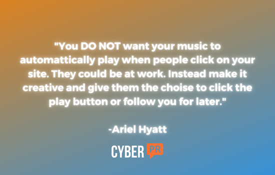 Be consistent with your brand! Whatever colors you’re using on your socials, images that represent who you are, anything that is tied to your brand and your music, use it. Make sure the color scheme on your website matches your socials to create consistency within your channels. You should always start off a brand with a style board, that way your font, font size, and colors coincide with your brand.