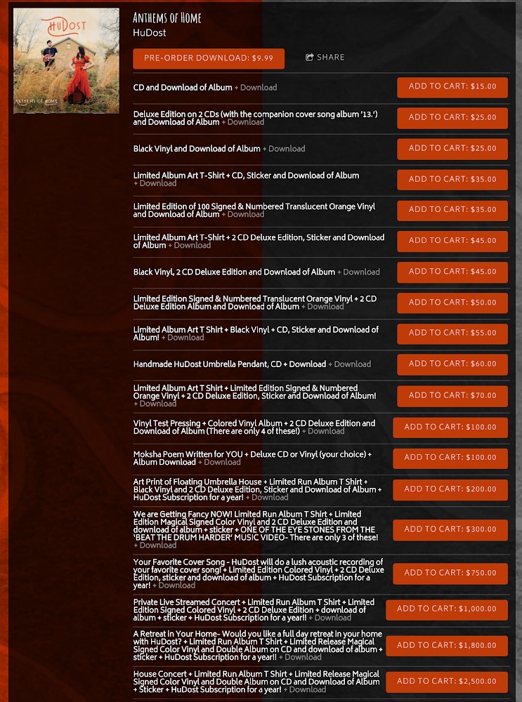 There are several approaches you can take with bundling to grab your fans’ attention. As we mentioned before, the bundles most likely to sell are product bundles. The reason for that is because you’re giving your fans something special, and sometimes unique, for buying your music and supporting you. You should get creative with your bundles. This can mean attaching song lyrics, album artwork, blankets, playing cards, etc. Be as unique and creative as you can. One of our artists, Marius Billgobenson, shares his bundle options below.
