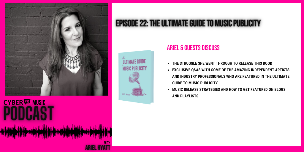 The much anticipated book is finally out, and Ariel is here to share with us some of the topics discussed in the book. In episode 22 of the Cyber PR podcast, Ariel welcomes 3 guest artists who discuss their experiences with music publicity. Ariel and her guests share stories of things they are doing to increase engagement and connect with fans. They also discuss some major differences between PR and publicity. Ariel welcomes one guest who dedicates his time on the publicity side of things while allowing her other guests to mention good PR moves. Ariel concludes the book with tips on how to find the right publicist and she shares these tips with listeners and has her guest speakers speak on it as well. This podcast episode gives people a breakdown of the book as well as giving real-world spoken examples of what Ariel mentions in her book.